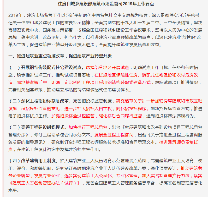 住建部建筑市場(chǎng)監(jiān)管司《2019年工作要點(diǎn)》出臺(tái)!